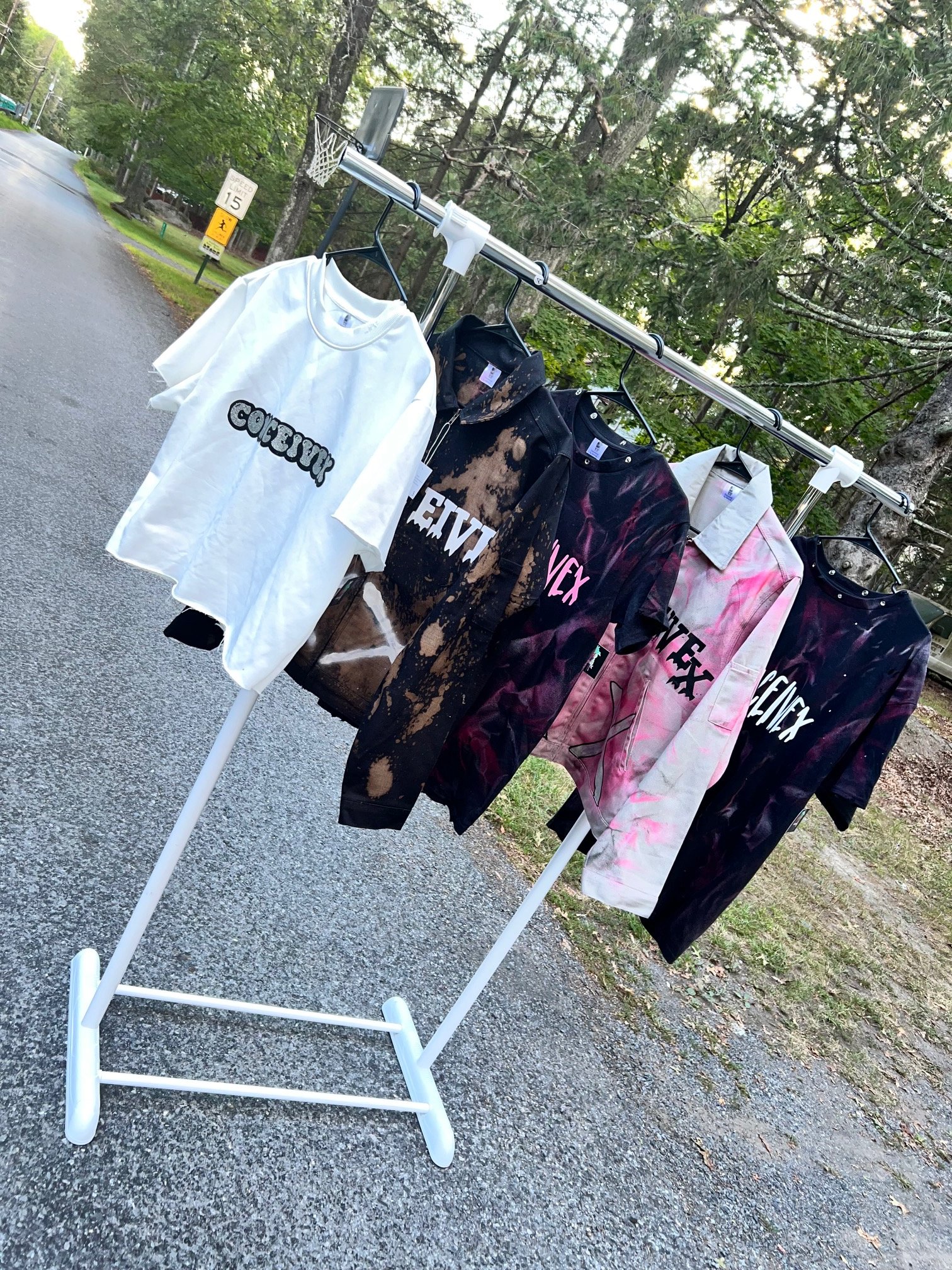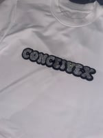 White boxy shirt with silver writing